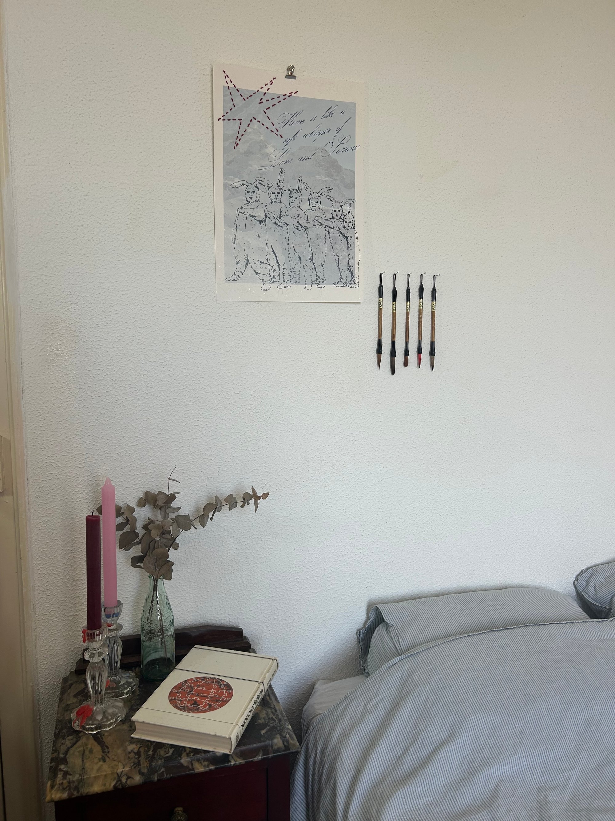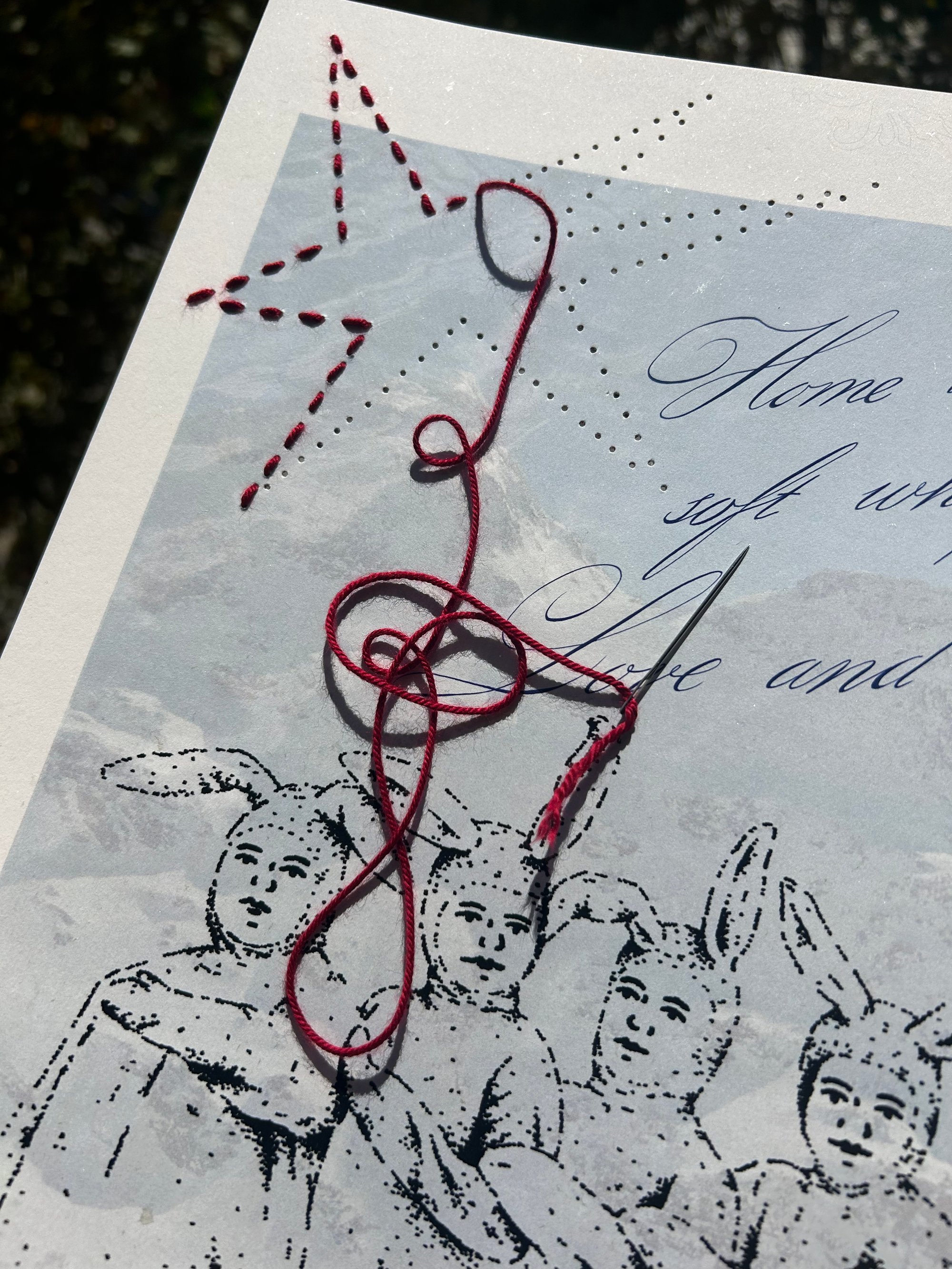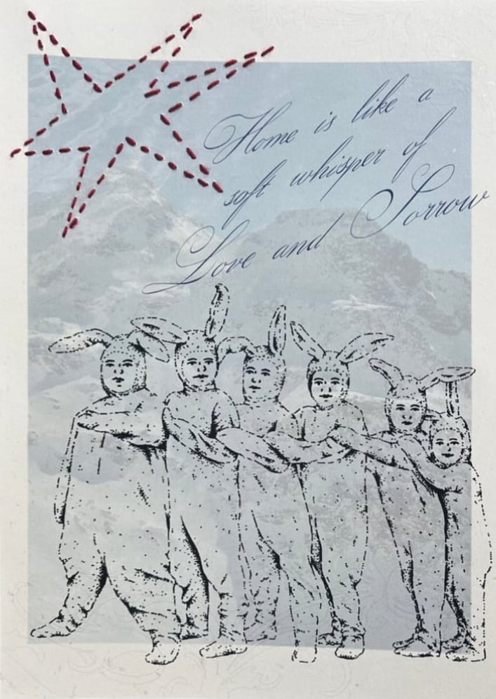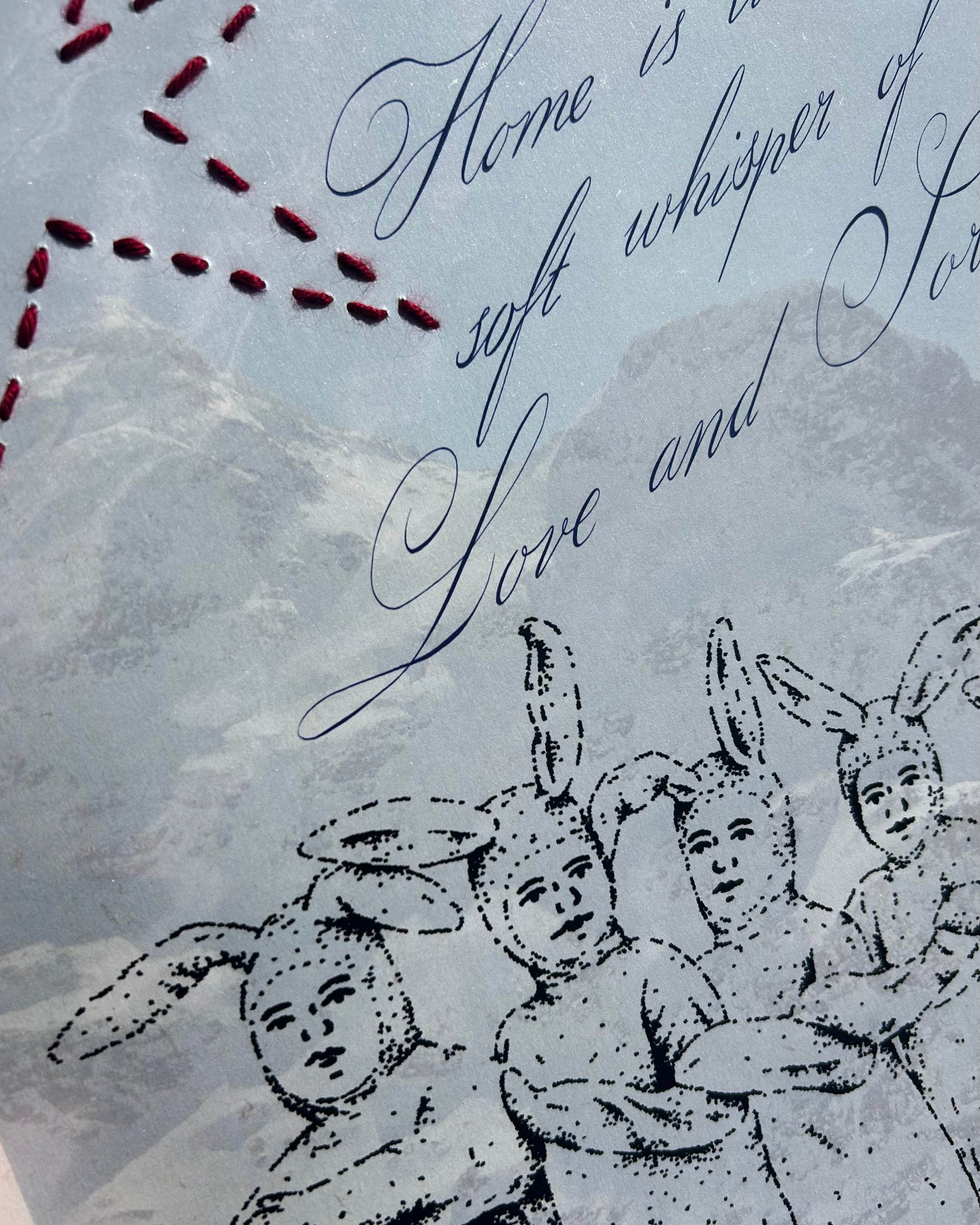 Bring a unique blend of illustration and texture into your space with this A3 poster showcasing original artwork by Tattoos by Femke. Each poster is enriched with delicate, hand-stitched embroidery details and paired with the poetic quote: “Home is like a sweet whisper of love and sorrow.”
